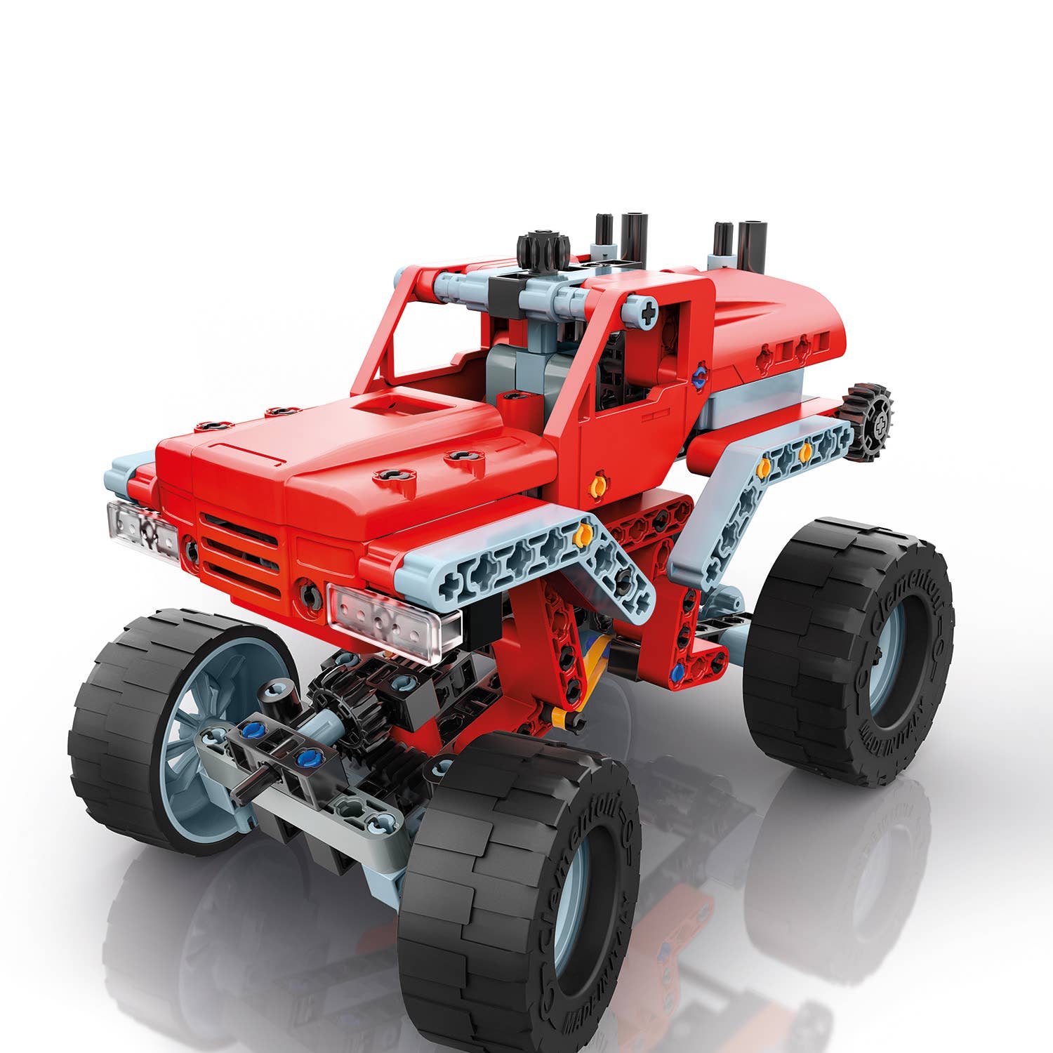This kit helps you get closer to the world of mechanics and engineering as you build a powerful monster truck. More than 200 components and 10 different truck combinations.