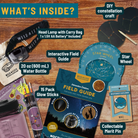 1 x Glow-in-the-Dark Collector Stickers: glow-in-the-dark stickers designed to fit on your water bottle as you spot night sky objects throughout the year.