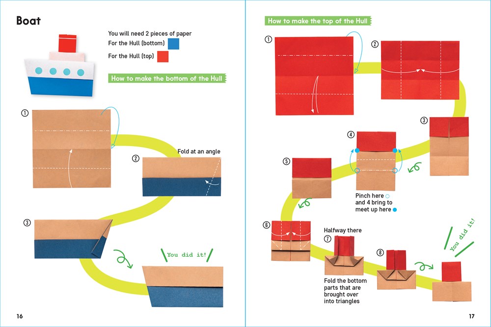 Folding paper animals, cars, boats and planes offers kids a chance to have fun while engaging their minds and developing their motor skills. They get a tremendous sense of accomplishment by folding and playing with these charming models, which look fantastic when displayed!