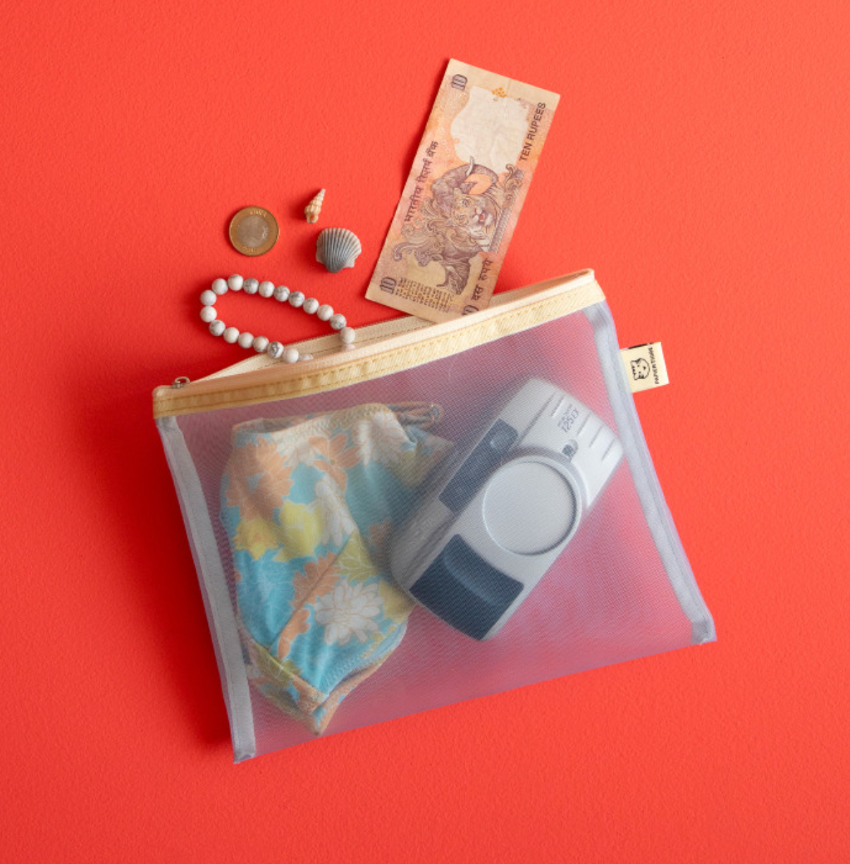 A lovely pouch to keep your phone, your notebook, your pens and pencils, your keys, your change, your toothbrush, your precious jewels, your make-up, your travel documents...