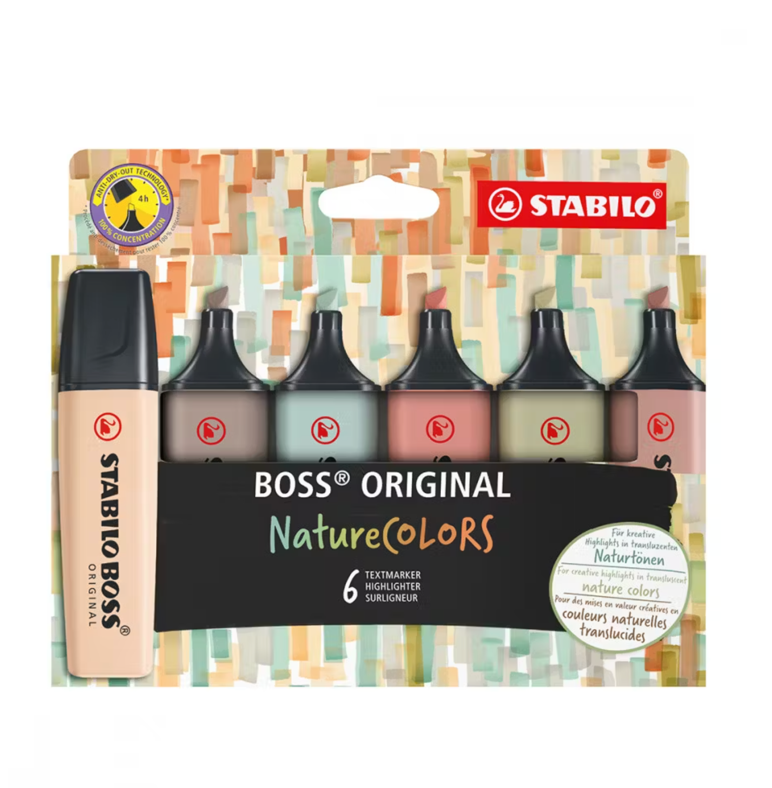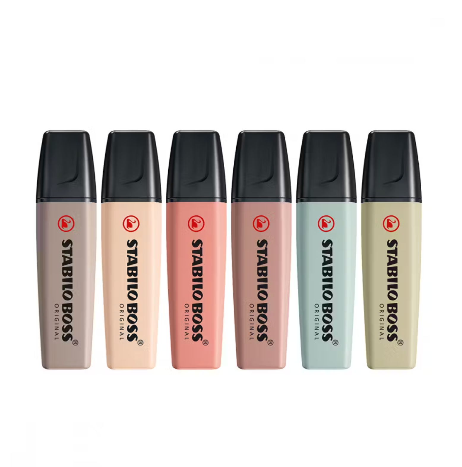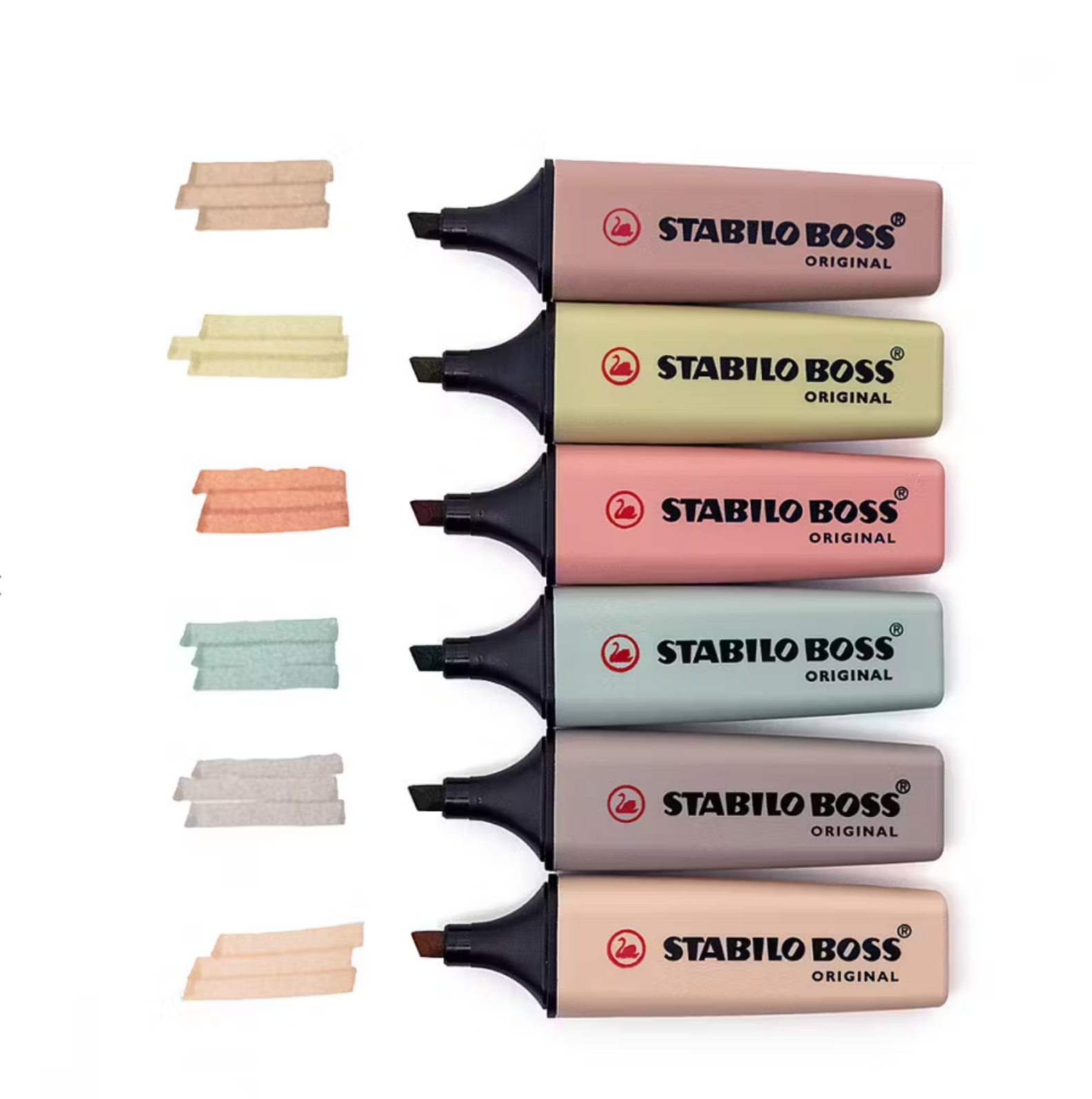 Highlight, underline, and emphasize key points with these classic Stabilo highlighters! This pack includes six highlighters in calm, earthy colors that will enhance your notes while being easy on the eyes.