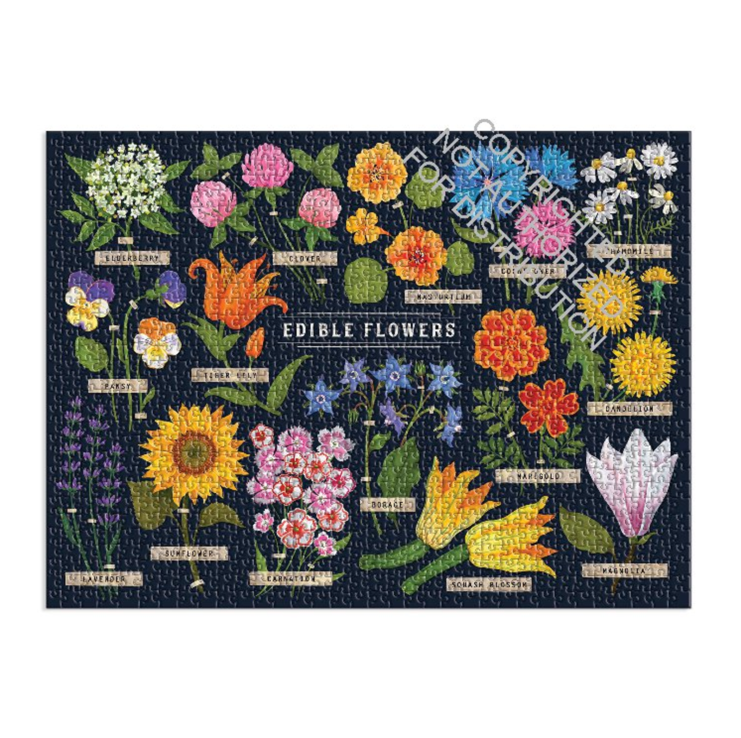 The Edible Flowers 1000 Piece Puzzle features colorful illustrations of beautiful petals we can eat, including the pansy, dandelion, carnation, and marigold. Galison puzzles are packaged in matte-finish sturdy boxes, perfect for gifting, reuse, and storage.