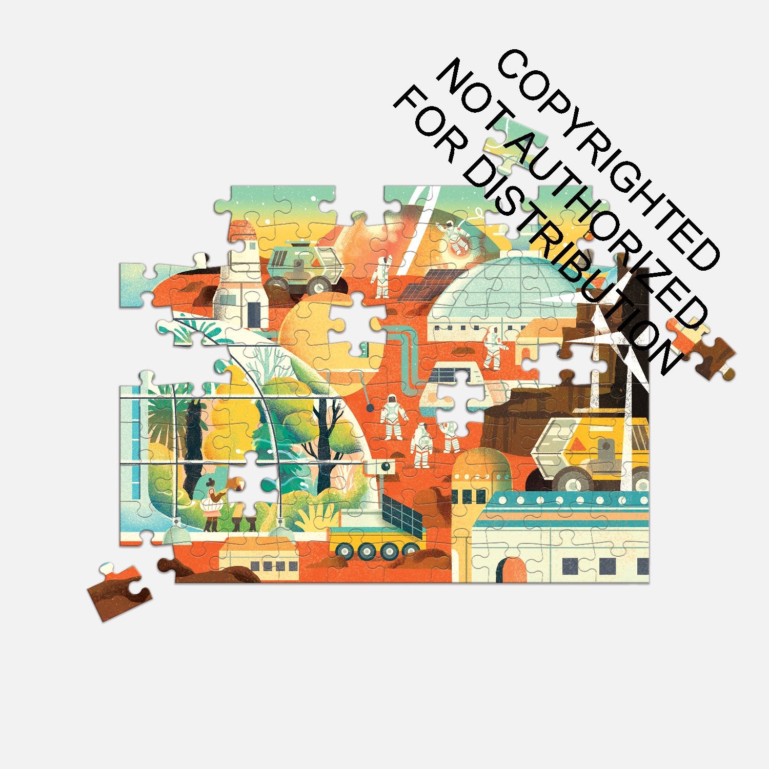 Mudpuppy's Space Mission Above & Below 100 Piece Double-Sided Puzzle features all things out of this world, land rovers and space stations on one side and planets and asteroids on the other. This two-in-one puzzle is a great family activity for adults and children to enjoy together. Puzzle pieces come packaged in a sturdy and easy-to-wrap box, perfect for gifting, reuse, and storage.