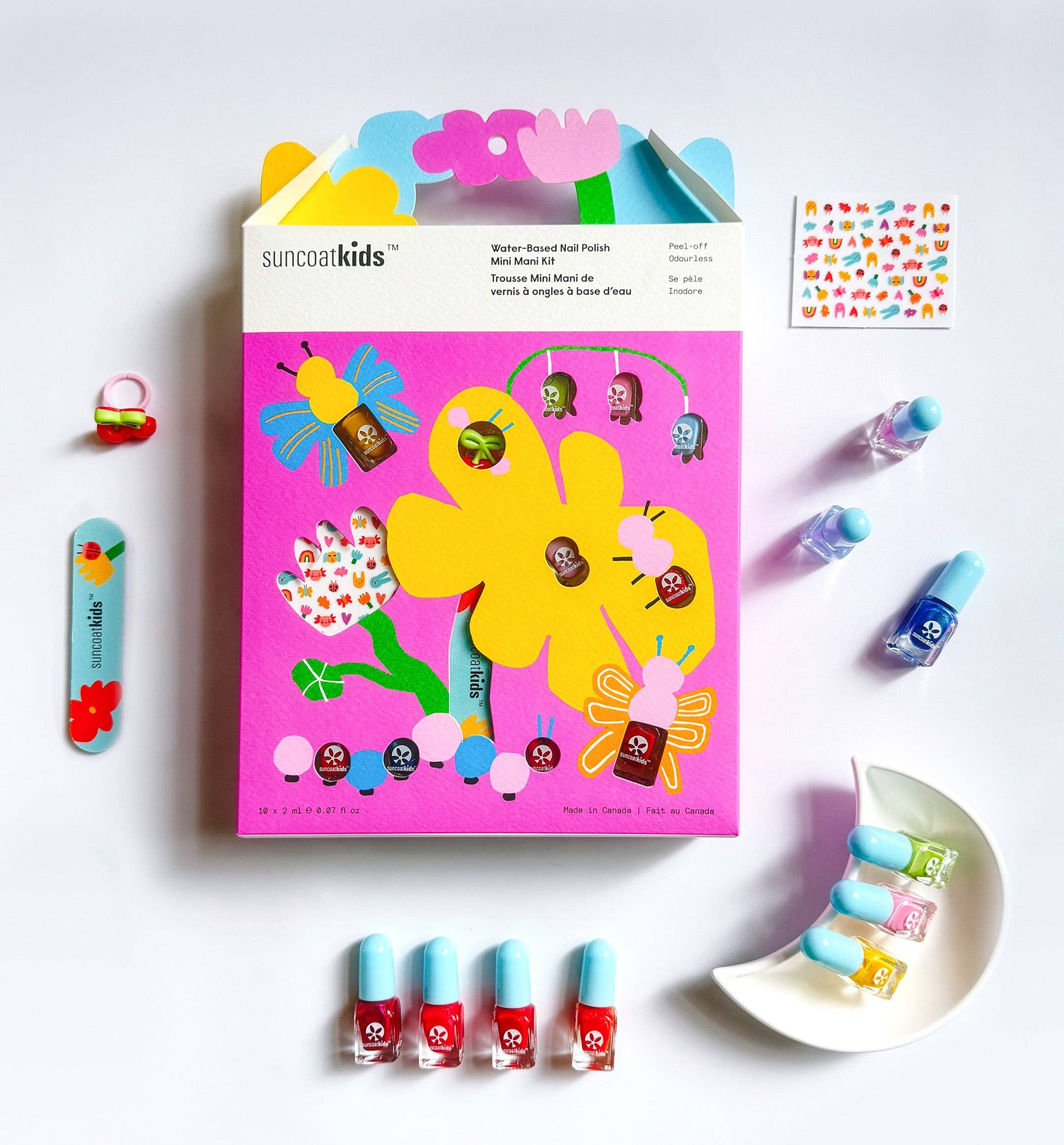 Enjoy a guilt-free mani pedi anytime! This kit has everything you need for a night (or day) in. Made with our water-based, non-toxic and peelable nail polish, this kid-friendly set is designed for young creators everywhere! Perfect for sleepovers, parties, and gift-giving!