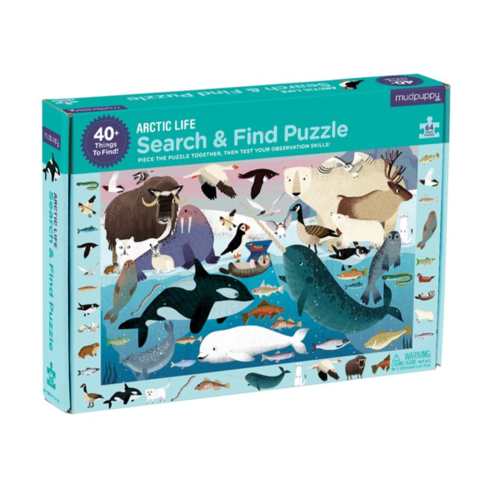 Mudpuppys Arctic Life Search & Find Puzzle is double the fun! First, children can piece together the 64 piece puzzle featuring diverse and colorful animals living in the arctic. After putting the puzzle together, children can test their observation skills to find the 40+ animals and fish in the border around the puzzle image. They are all there, can you find them?